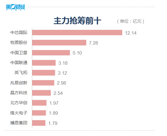 具体到个股来看,中芯国际、中国卫星、牧原股份分别获净流入12.69亿元、9.82亿元、8.39亿元。