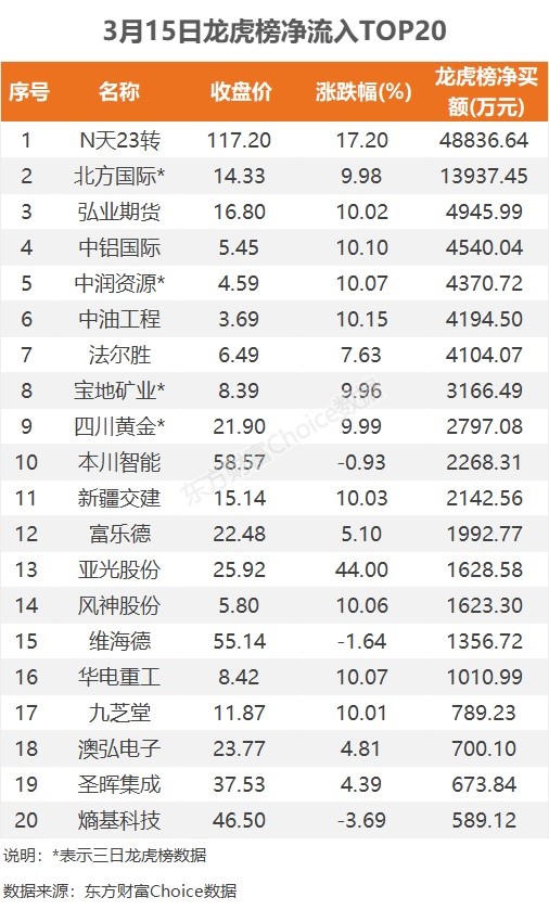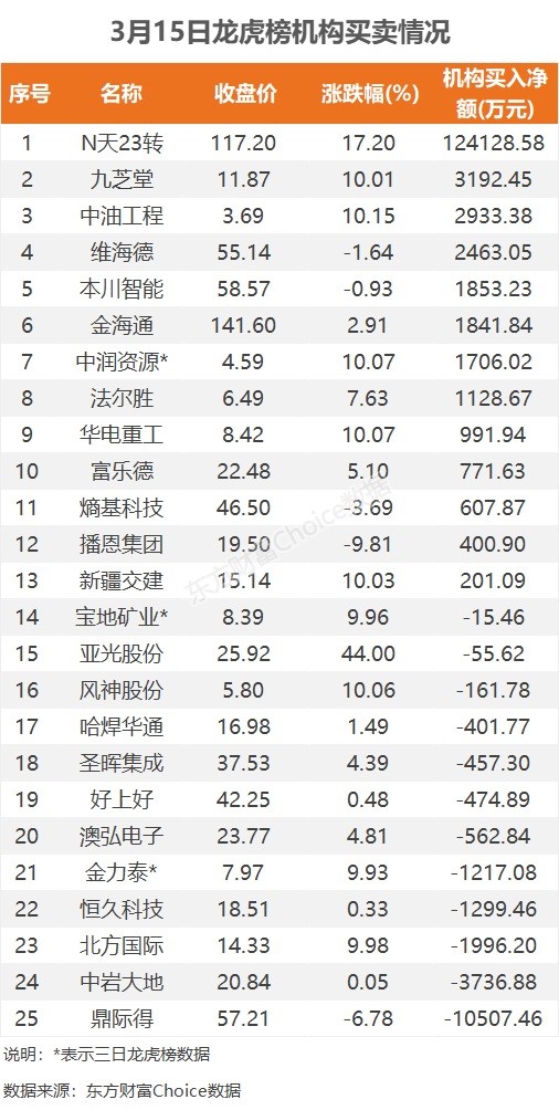 3月15日龙虎榜揭秘:4.88亿抢筹N天23转 机构净买12只股