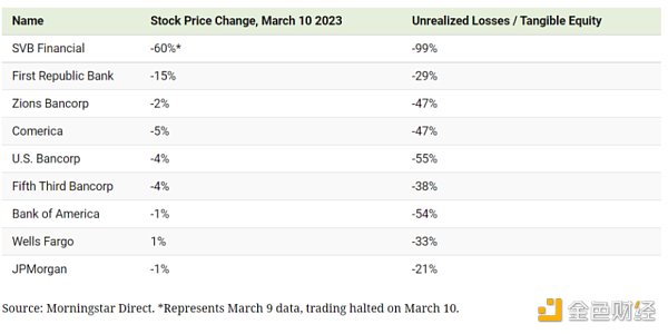 在SVB崩溃的前一天,美国四大银行总共损失了520亿美元。上周五,其他银行股出现了两位数的跌幅,包括Signature Bank(-23%)、First Republic(-15%)和Silvergate Capital(-11%)。