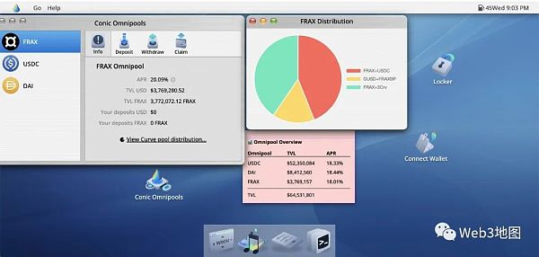将用户的流动资金分散到不同的资金池中,并将其押在Convex上,用户赚取CRV CVX CNC。