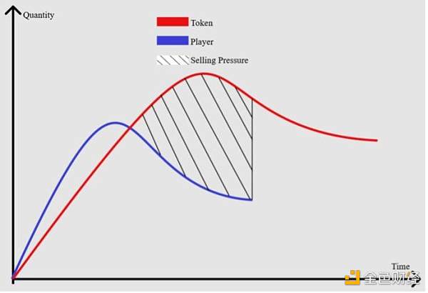 上图中token的红线斜率表示通货膨胀率,Player的蓝线斜率表示用户的增长率。 项目方可以关注玩家数量的变化,重点关注玩家激增期间的动态调整,控制玩家的增长速度和货币供应量。 过剩的货币超重是不可取的。 随着玩家数量的增加,货币供应应该会变慢。 对奖牌总量实行一定的分配制度,制定政府每日或每月发放的奖牌总量,然后按比例进行宏观调控,控制通货膨胀率,动态平衡奖牌供应量增长速度和用户增长率,延长游戏寿命因为如果新玩家的数量跟不上货币供应量的话,货币供应量会急速下跌,变得无处消耗,从而引起加速退出的恶性循环。