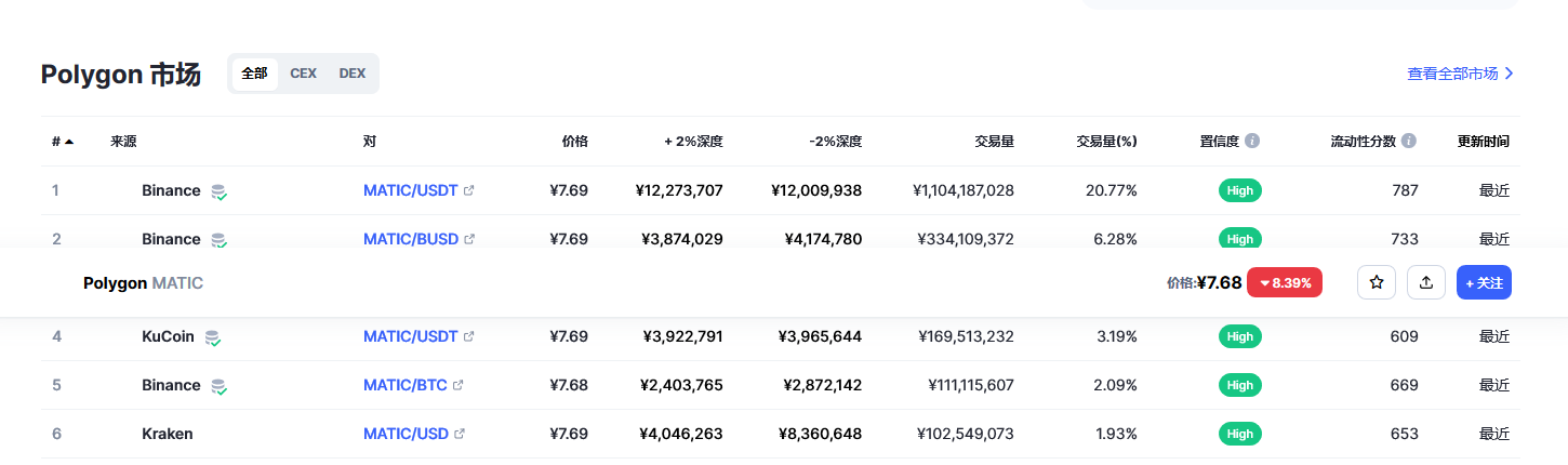 Polygon 今日价格 为 ¥7.69 CNY,其 24 小时的交易量为 ¥5,316,136,297 CNY。 我们会实时更新MATIC兑换为CNY的价格。 Polygon 在过去 24 小时内下跌了 7.56。 目前的 世链财经 排名为第 #8 位,其市值为 ¥67,170,687,778 CNY。 其流通供给量为 8,734,317,475 MATIC 个货币 此外,供给量上限为10,000,000,000 MATIC 个货币。