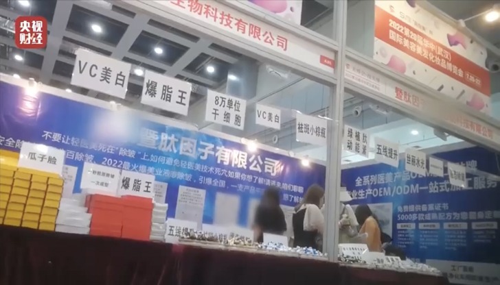 就这样,一款只被批准用于表层涂抹的化妆品被打进了消费者的面部。记者进一步调查发现,在这些展会上,有些面部美容针剂注射产品甚至连化妆品备案都没有。