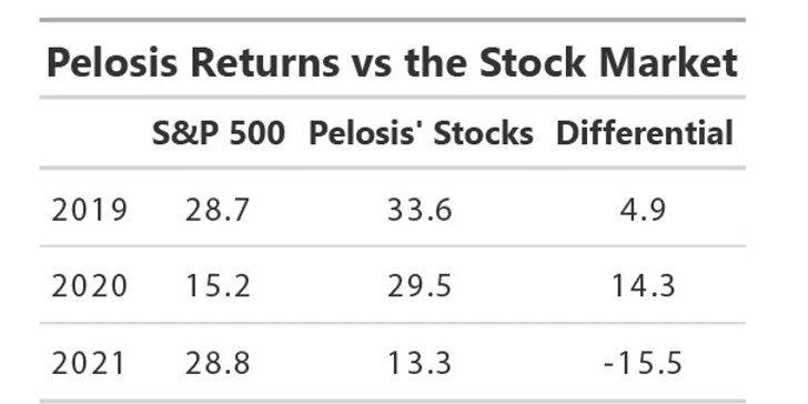 佩洛西多次声称本人没有炒股,但丈夫保罗佩洛西频繁进行大量股票交易,被外界质疑为认为他的一些“精准操作”是靠老婆给的内幕消息。