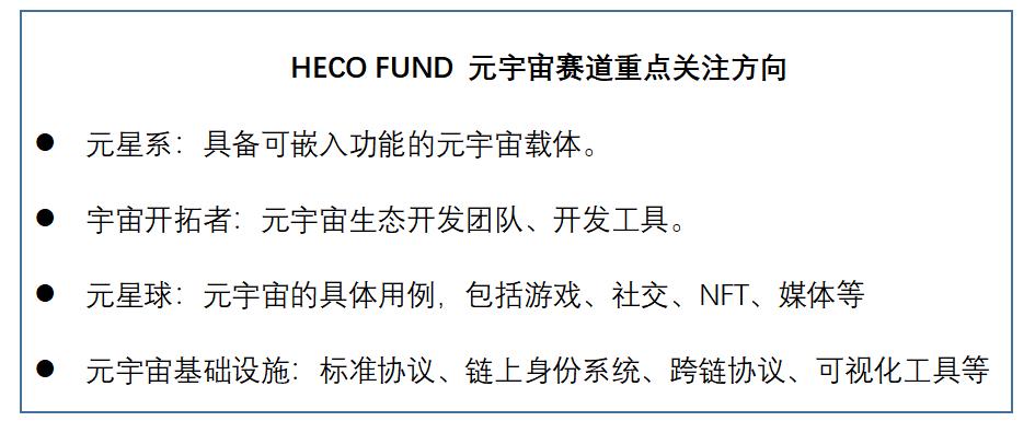 我们站在巨人的肩膀上。在加密领域可以实现许多功能。比特币和usdt可以作为元宇宙的基础资产;ETH、heco等公链可以为元宇宙提供技术支持;Dapps、DeFi和NFT项目可以为元宇宙提供丰富的服务;隐狐和去中心化地给我们带来了开放世界的第一个版本。