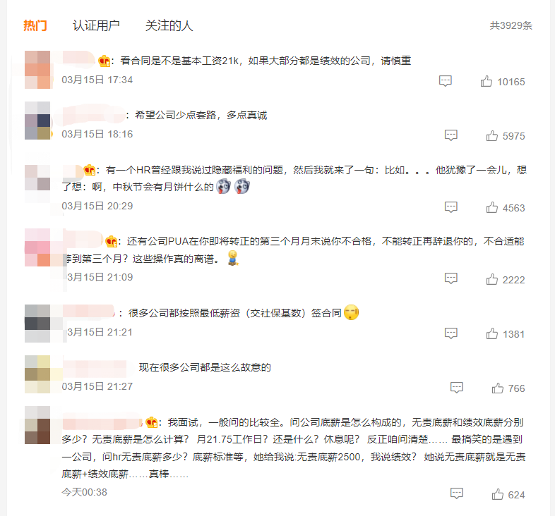 对此,网友称:“希望公司少点套路,多点真诚”、“看合同是不是基本工资21k,如果大部分都是绩效的公司,请慎重”......