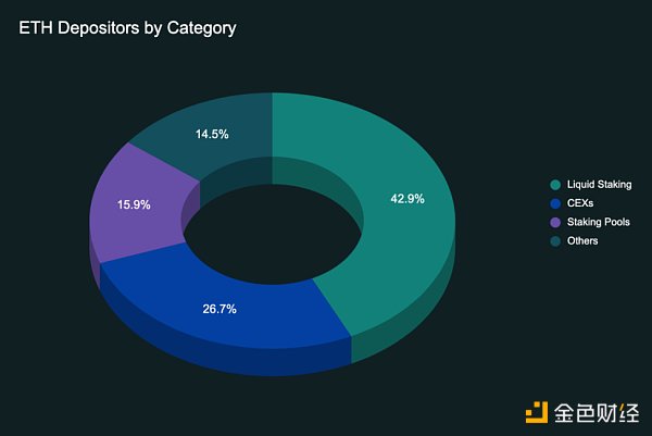 在总的参与率的基础上,我们密切地追踪着质押存款进入或退出网络之后的去向,在上海升级之后,质押网络的形貌将有机会发生变化,以适应不同的市场现实,与我们启动信标链的时候有着巨大的不同。