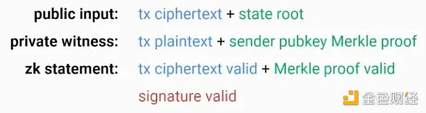 验证签名,你需要根据状态根验证发件人公钥 Merkle 证明。用 SNARK 证明你的发送者公钥 Merkle 证明是有效的并且你的签名是有效的。
