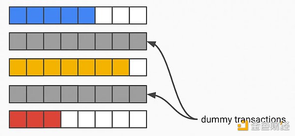 你甚至可以通过允许验证者进行「虚拟」交易来试图隐藏交易存在的泄漏,因此内存池总是被填满。验证者还需要一个 SNARK 来证明他们是被允许创建这些虚拟交易的验证者。当「真实」交易出现峰值时,验证者将广播较少的虚拟交易。当真实交易下降时,验证器将发出更多虚拟交易。