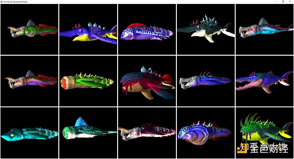 游戏《无人深空》中使用程序化生成的海洋生物示例