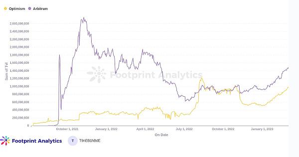 虽然几个月前Optimism短暂地超过了Arbitrum的TVL,但后者后来又重新获得了领先优势。