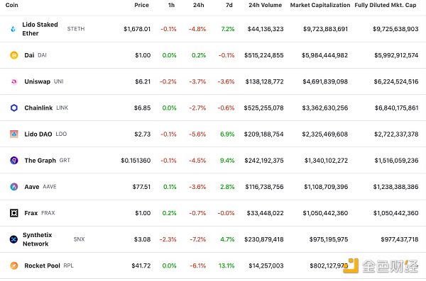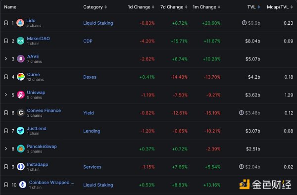 DeFi项目锁定资产前十排名及锁仓量 数据来源:defillama