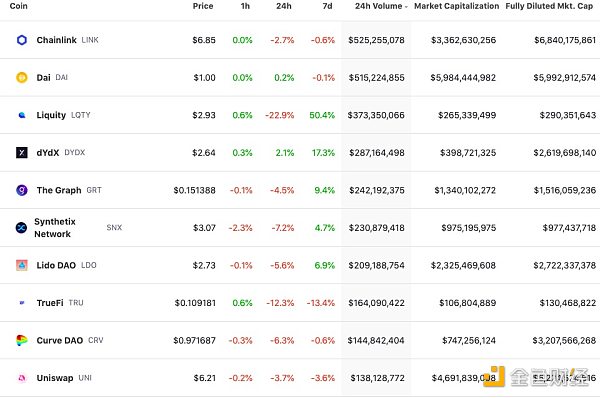 过去24小时去中心化交易所的交易量 数据来源:coingecko