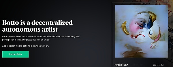Botto是一个通过DAO治理的生成艺术社区。Botto引擎使用了Stable Diffusion、VQGAN CLIP、GPT-3等多种模型,根据文本生成艺术图像,每周,会根据社区不同艺术倾向、审美风格等要素,预选出350张图像呈现给社区进行投票,将最受欢迎的图像铸造为NFT,并最终在SuperRare上进行拍卖,以此获得收入并对Botto引擎进行训练。目前,参与社区的治理需要一定的Token或者Pass卡。从本质上来看,Botto是AI生成艺术NFT与DAO治理的结合体,杂糅了AI的概念,也融合了NFT、DAO和代币经济学等方面的内容,能否维持社区长久且稳定运营也其考验着治理者的智慧。