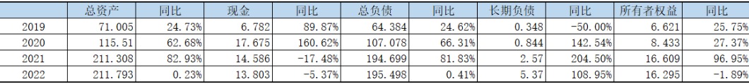 硅谷银行采取了非常激进的资产、负债策略,为今天的风险暴露埋下了隐患。我们看它的负债端就有问题,它是以活期存款为主的,长期负债的占比非常低,去年(2022年)只有不到3%是长期负债,这是一个问题(如下表,单位10亿美元);另外我们看它的资产端,它主要是以美债、MBS这类资产为主,贷款大概只有30%左右,现金非常少,这又是一个问题。