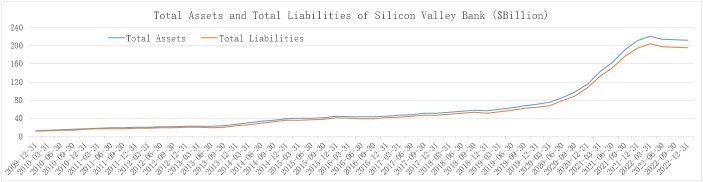 郭盛华:在公共卫生事件之后,美联储实施了全面的宽松政策,利率非常低,然流动性极其充裕,在这个过程当中商业银行的资产负债表也大规模地扩张(如下图,以硅谷银行为例)。