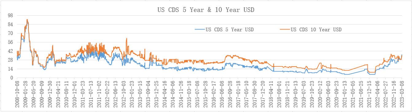 3月10日当天,5年期和10年期的CDS利差分别是36个点和34.6个点,跟2月1日美联储加息的时候分别只上涨了4个点或2个点,非常稳定,市场没有受到大的影响。然后看融资环境,也是非常宽松的(如下图所示,金融压力指数)。