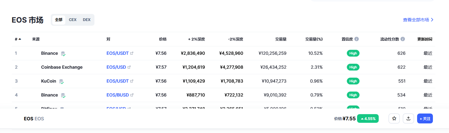 可以通过Binance、Coinbase、Kraken、Bithumb、Upbit和无数其他交易所购买EOS。考虑到它在加密行业中的广泛应用,你很难找到一个不支持它的交易平台