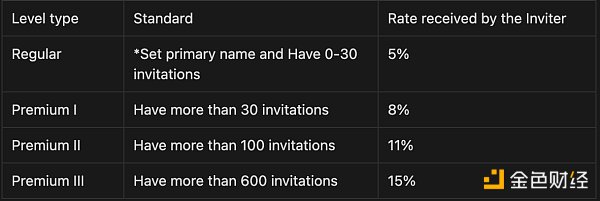 2022 年 11 月份上线推荐计划,.bnb 域名持有人可以通过分享推荐获得佣金。邀请人数越多,获得的佣金比例越高。推荐人最多可获得被邀请人注册费的 15%。