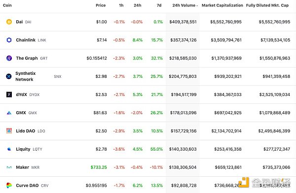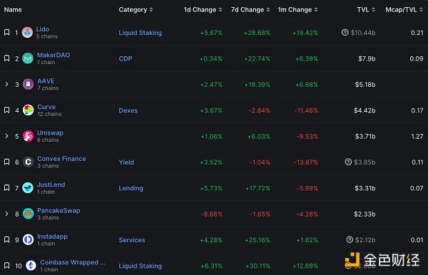 DeFi项目锁定资产前十排名及锁仓量 数据来源:defillama