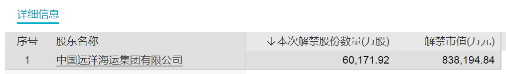 中远海能解禁的股份来自于中远海能2020年3月完成的定增,为中国海洋海运集团有限公司这一个股东所有,彼时中远海能的定增发行价为6.98元/股。