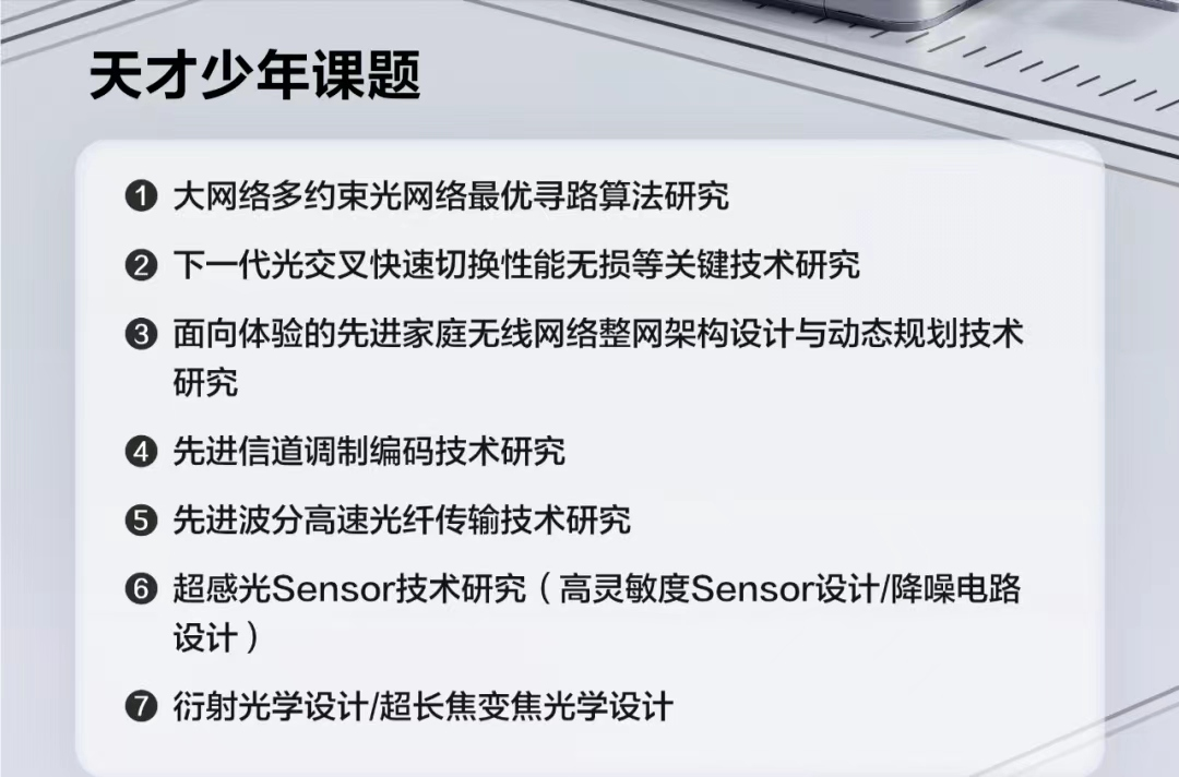 据悉,华为光产品线有7大课题等待“天才少年”去挑战。