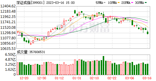 3月16日,三大指数均跌超1%。沪指跌1.12%,深成指跌1.54%,创业板指跌1.52%。总体上个股跌多涨少,两市超4300只个股下跌。两市21股涨停(含ST股),10股跌停。两市成交超8400亿元,成交额较昨日略有放大;北向资金小幅净买入。