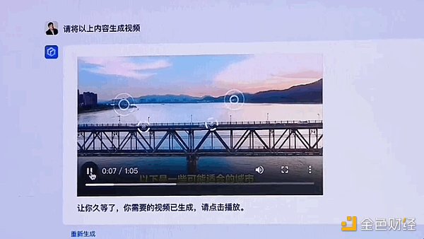 李彦宏一句指令,将以上内容生成视频,很快啊,不到几秒钟,文心一言就把字幕和视频做好了: