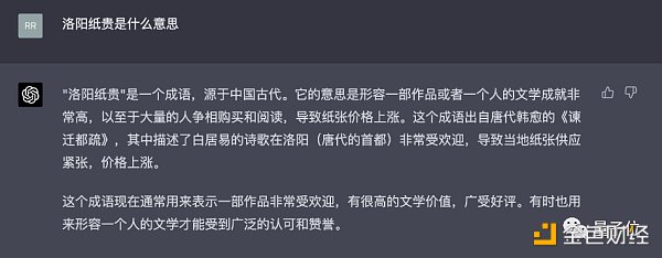 那么,将这个问题抛给GPT-4呢?首先问问它,知不知道洛阳纸贵是什么意思: