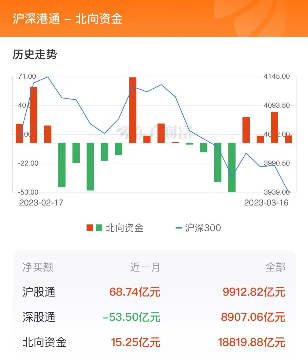 理财笔记Choice数据显示,近一个月,北向资金净流入15.25亿元,其中,沪股通净流入68.74亿元,深股通净流出53.50亿元。