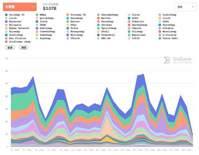 从DeFi的角度来看,6月5日,Uniswap V3已经部署到以太坊扩展网络arbitrum。汽油费的下降也带来了交易的冷却期。这个月,DEX的交易量一直在下降。二层板块的火爆还没能完全带动大家。场边的人数显然更多。此前的“航空货币”热潮消退后,大家也都很困惑,因为虚增只是昙花一现。