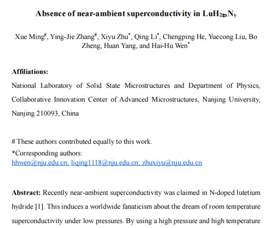 导读近期,美国罗彻斯特大学Ranga Dias团队关于“室温超导”的最新研究结果吸引了全球学术界广泛关注。上海证券报记者了解到,南京大学物理学院闻海虎团队经过实验验证后,对Ranga Di