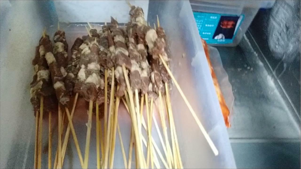 与烤鱼一样,烧烤的食材也全是冷冻产品,需要提前解冻。以羊肉串和五花肉串为例,解冻后保质期为24小时。但记者发现,他们一般会放三四天甚至更久,厨师长对此也心知肚明:“保质期是24小时,但我们24小时之后又不能把它丢了,这个照常卖,有人来查的时候你要知道。”