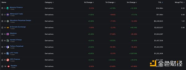 截至目前,由 Defillama 统计的已上线 GMX fork 协议已经有近 20 个,分布在不同链上,下面我们将挑选七个代表项目进行盘点。