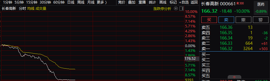 在市场大涨之际,另一只股票也不合时宜地崩了,那就是长春高新。