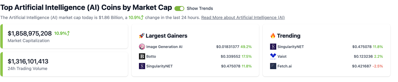 最近互联网上讨论最为热切的话题,无异于OpenAI发布了GPT4版本,以及GPT4版本有多么强大,甚至被认为会颠覆当前传统语境下的工作业态,并会给Web3世界带来不可估量的增长空间。截至目前,据Coingecko数据,目前整个AI板块已经收录31个相关项目,整个市场总市值高达1,858,975,208美元。(推荐阅读:《OpenAI推出GPT-4,一分钟速览新特性》)