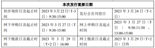 中信金属与常青科技本次发行时间安排一致,初步询价日为3月23日,网上申购日为3月28日,网上缴款日为3月30日。