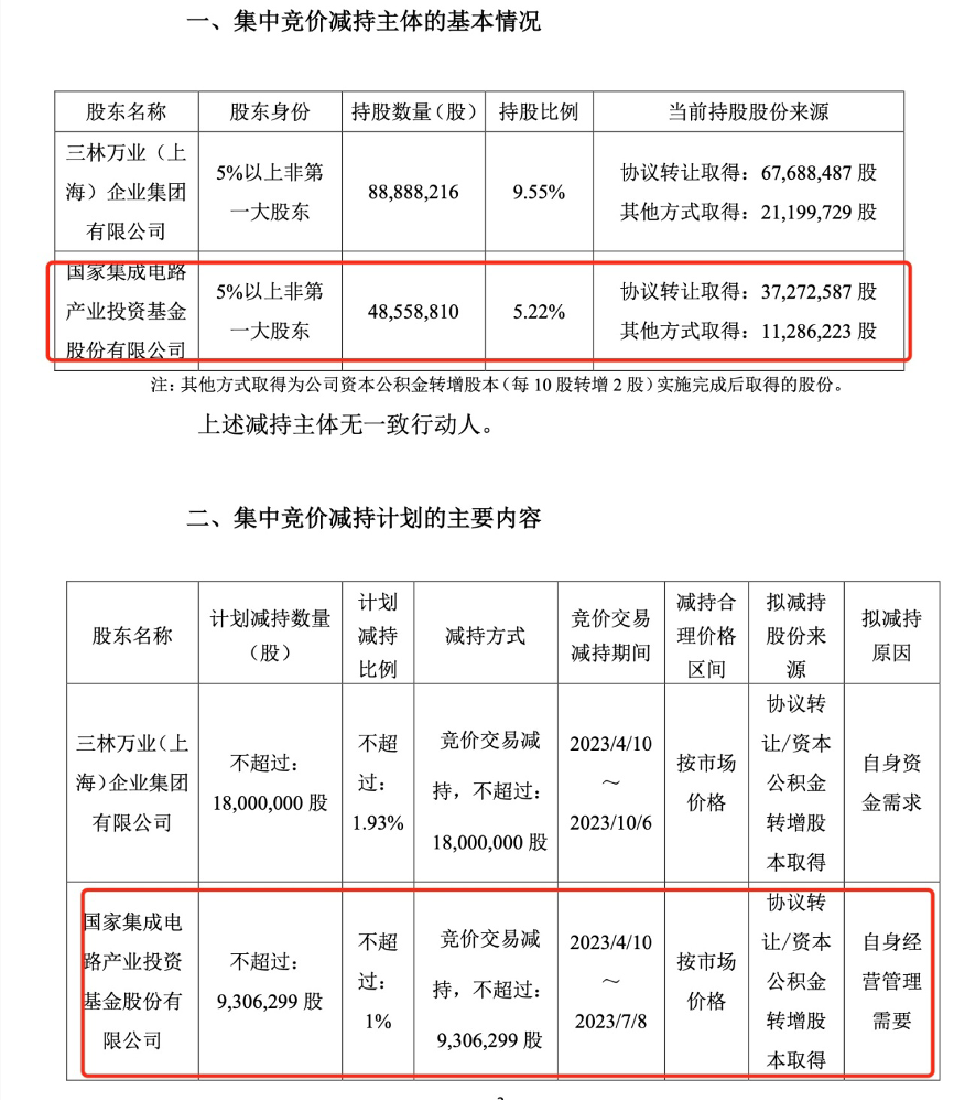 3月15日,主营业务涵盖集成电路的万业企业发布公告称,大基金因自身经营管理需求,拟通过集中竞价交易方式减持不超过930.63万股,超过公司目前总股本的1%。据悉,当前大基金持有该公司4855.88万股,占公司总股本5.22%,是公司的第三大股东。