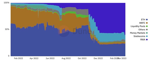 每一个MetaDAO都是MakerDAO的一个子DAO,可以拥有自己的代币和金库,专注于自己DAO内部的分工、治理和开展活动,而无需被其它MetaDAO分散注意力。每个Meta都可以发行自己的代币并与MKR组成流动性池子,MakerDAO会发放额外的MKR作为流动性激励。即将推出的Spark Protocol就是第一个MetaDAO,主要业务为借贷,与Aave直接竞争。在Spark Protocol中有可能会允许抵押MKR借出DAI,这将会极大地提高MKR的需求。Spark将支持stETH等LSD抵押借出DAI来吸引更多以太坊资产,减少DAI抵押物中USDC的占比。