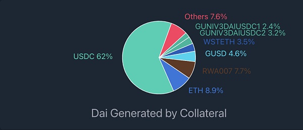 在Tornado Cash被制裁后,USDC的发行商Circle积极配合美国执法机构的制裁,冻结标记地址的USDC。部分黑客会将所盗资产转换为DAI以逃脱USDC和usdt发行商的冻结,加上MakerDAO国库中大部分为USDC,在未来美国监管机构有可能会对MakerDAO施加更多监管的压力。
