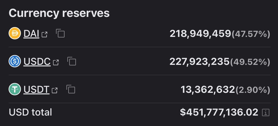 Curve数据显示,USDC/usdt有超过2%的脱钩,Curve 3pool也发生明显比例倾斜,截稿前usdt占比骤降至2.9%,而USDC和DAI占比分别上升至49.52%、47.57%。