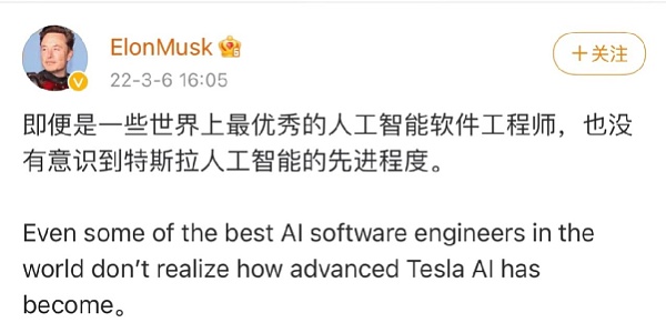 马斯克曾在微博称特斯拉的AI实力被“低估”