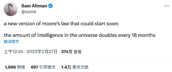 特斯拉研发无人驾驶的时间线,跟人工智能这门科学在近10年的突飞猛进密不可分的,而人工智能的演进速度会越来越快。OpenAI创始人Sam Altman刚提了一个新的理论:新的摩尔定律将会开启,宇宙中的智能生命每隔18个月将会翻一倍。