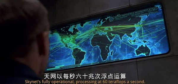 在2003年上映的电影《终结者3》里,毁灭人类的超级计算机——天网的算力是60 TFlops。