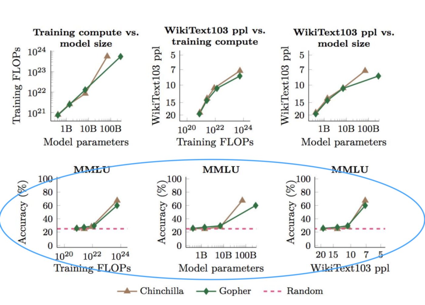 DeepMind在2022年的一个研究中提到,在给定总计算量不变的情况下,模型训练Loss在模型参数量和训练数据量的变化存在一个最优的平衡点。