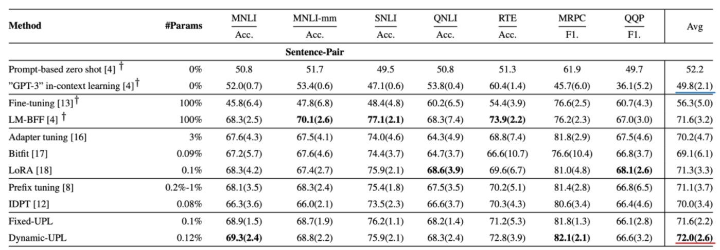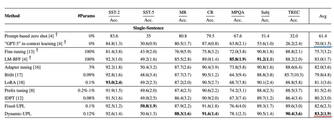 其中,在单任务和句子分析上,Dyanmic-UPL获得了83.2分,GPT-3则是70分。而在双任务和双句子的分析上,Dyanmic-UPL获得70分,GPT-3是49.8分。