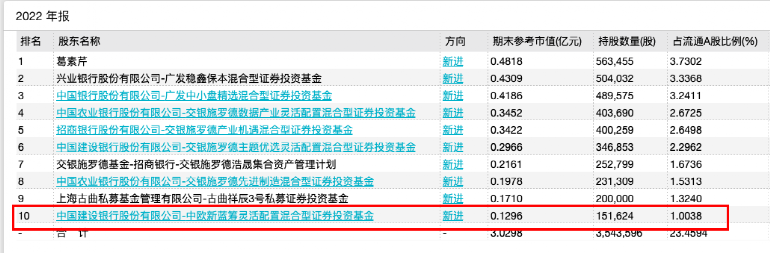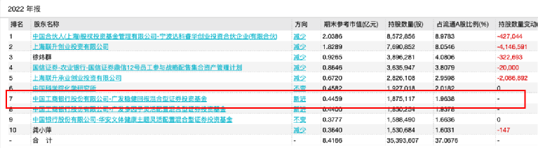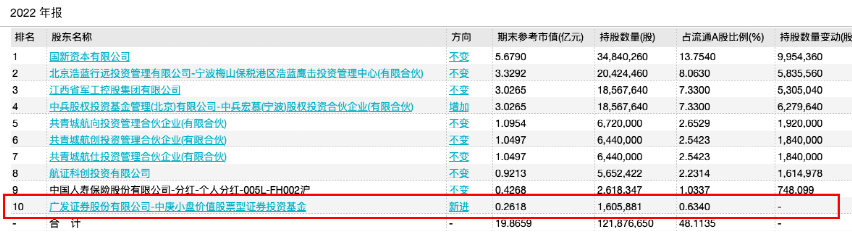 近日,江航装备发布2022年年报显示,丘栋荣管理的中庚小盘价值持有160.59万股,新进前十大流通股东。