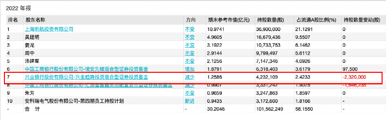 近日,安科瑞2022年度报告显示,谢治宇等管理的兴全趋势投资持有423.21万股,位列第七大流通股东,但该基金去年四季度减持了232万股。