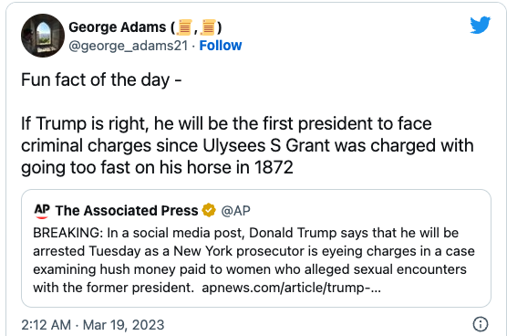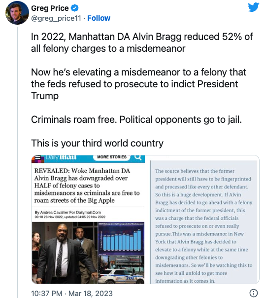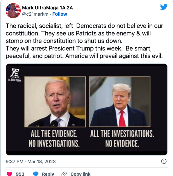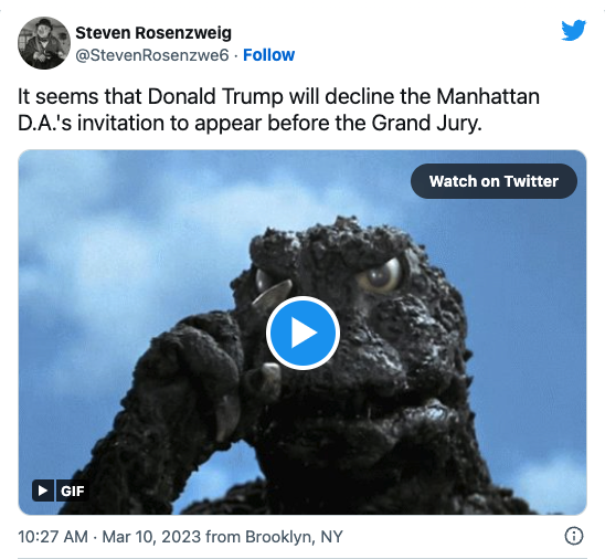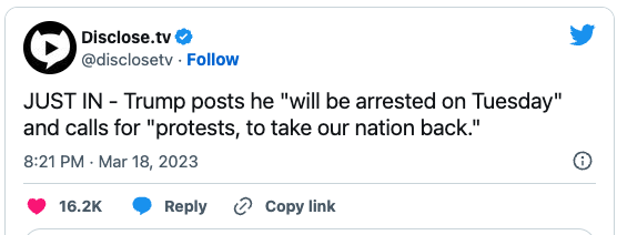 特朗普继续说,“抗议,把我们的国家夺回来!" 呼吁支持者抗议对他可能进行逮捕。所有迹象都表明,由布拉格检察官组成的大陪审团提出了指控,因此必须做出这一回应。
