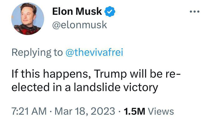 今天大早,埃隆·马斯克预测,如果唐纳德·特朗普本周被捕,他将以压倒性优势再次当选。这可能会给唐纳德·特朗普带来巨大的推动力。